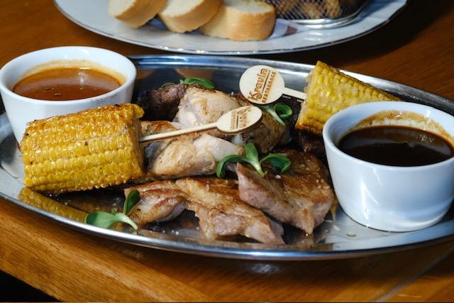 600g masa- hovězí Hanger steak, vepřová krkovička a kuřecí Supreme.